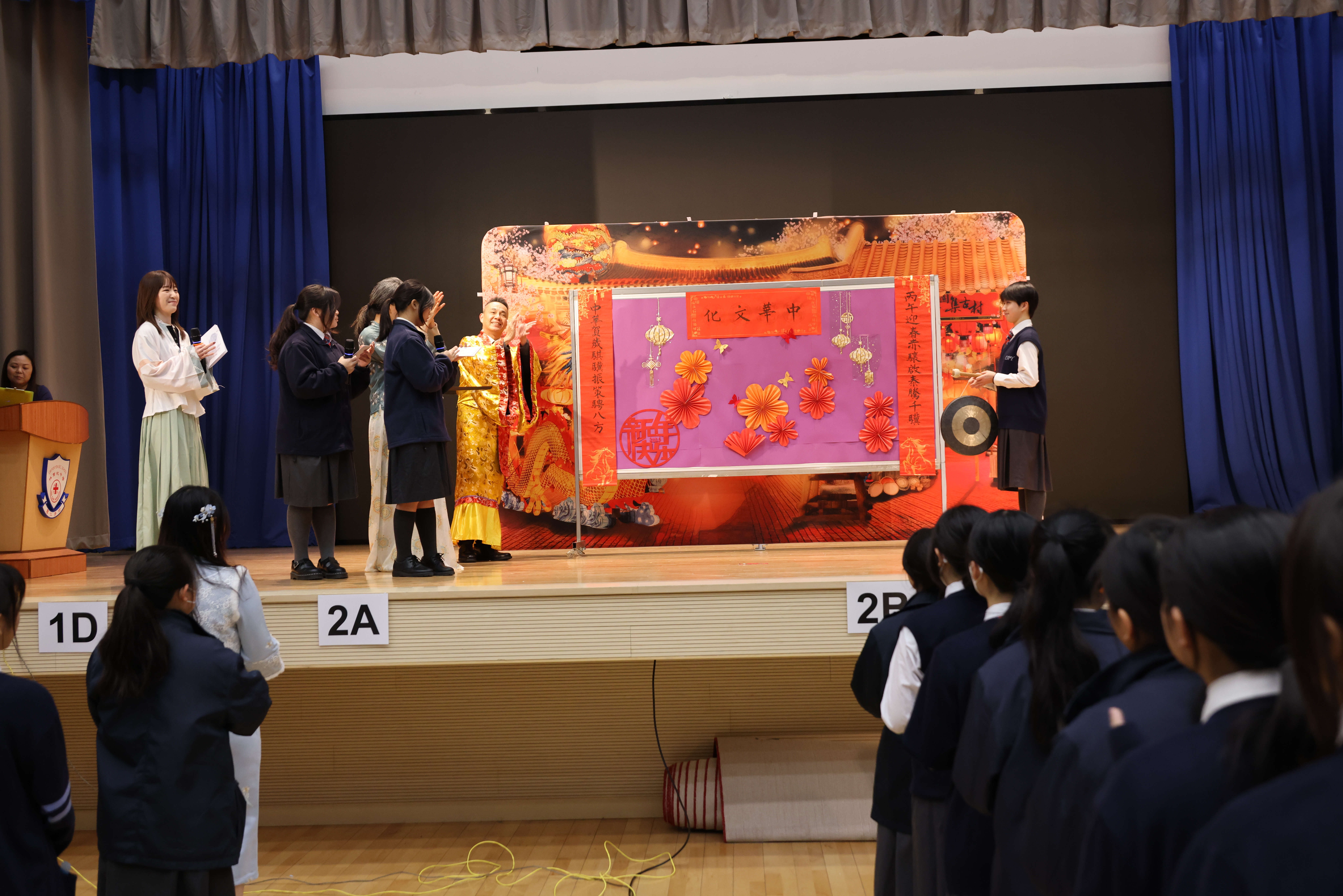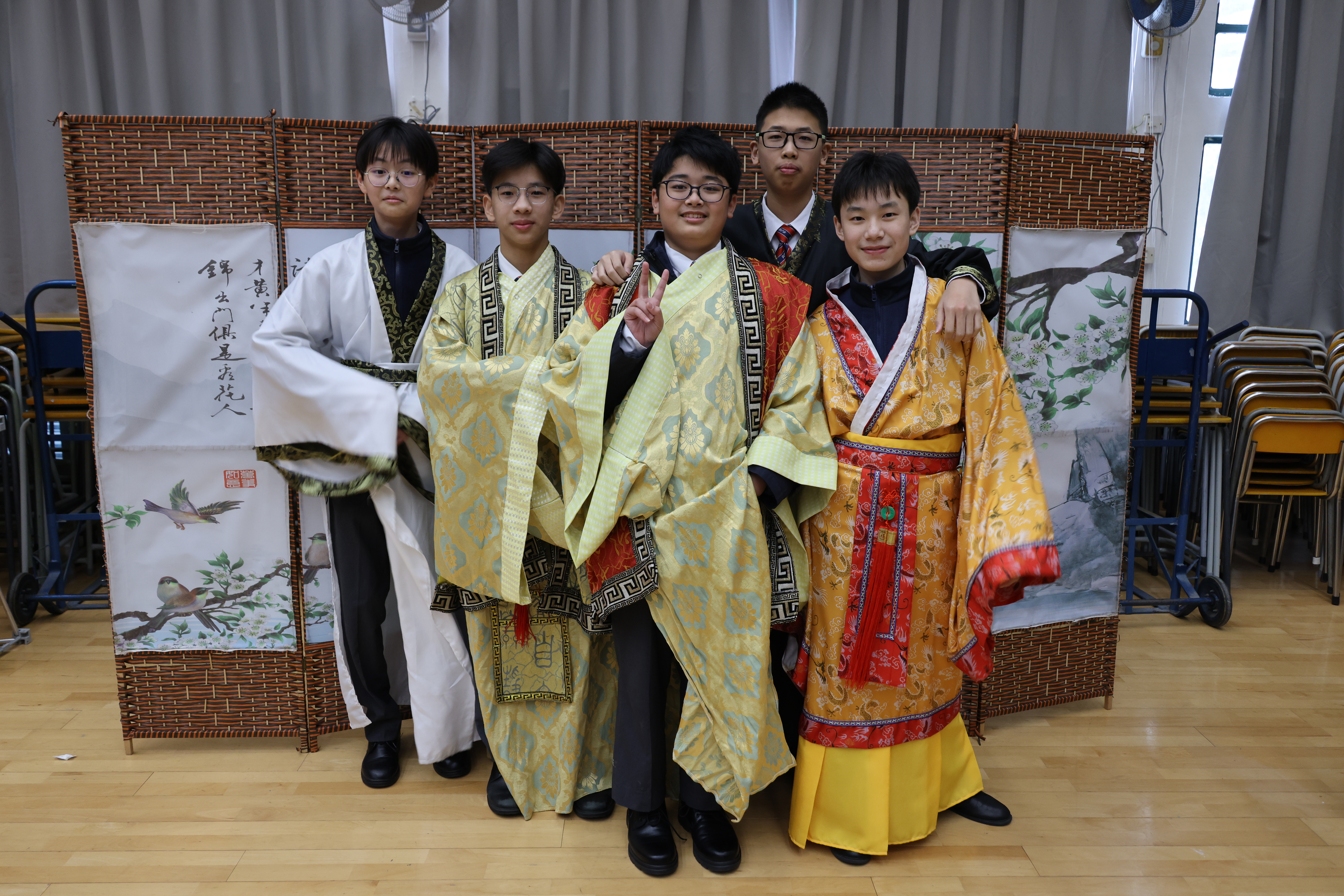為弘揚璀璨的中華文明,由德育及公民教育委員會與中文科合辦的「中華文化週」,今日在禮堂隆重開幕。現場化身古代市集,師長們身著典雅漢服,與佈景相映成趣,帶大家沉浸式感受中華建築與服飾之美,仿若穿越千年,步入活色生香的文化長廊。