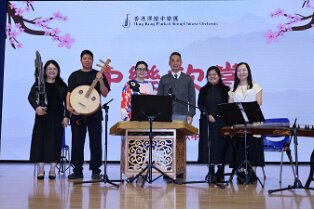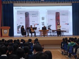 為推動中華文化及促進多元藝術體驗,本校本年度文化日成功邀請香港彈撥中樂團於禮堂舉辦「中樂演奏欣賞」會,學生反應熱烈,獲益良多。
